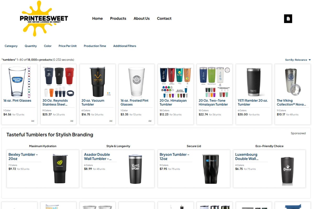 - Promo products: tumblers, cups, accessories, branded gifts, and more